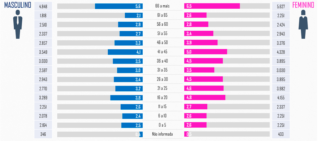 POPULAÇÃO POR SEXO SEGUNDO A FAIXA DE IDADE (EM ANOS)