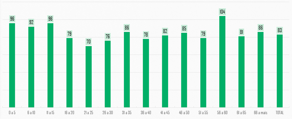 NÚMERO DE HOMENS PARA CADA GRUPO DE 100 MULHERES